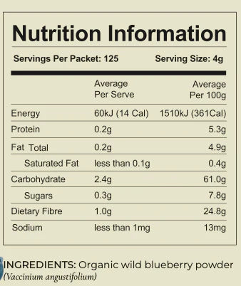 - Contains 8:1 potency (8kg of fresh wild blueberries to make 1kg of powder)- this amount can vary depending on how juicy the berries are at harvest.